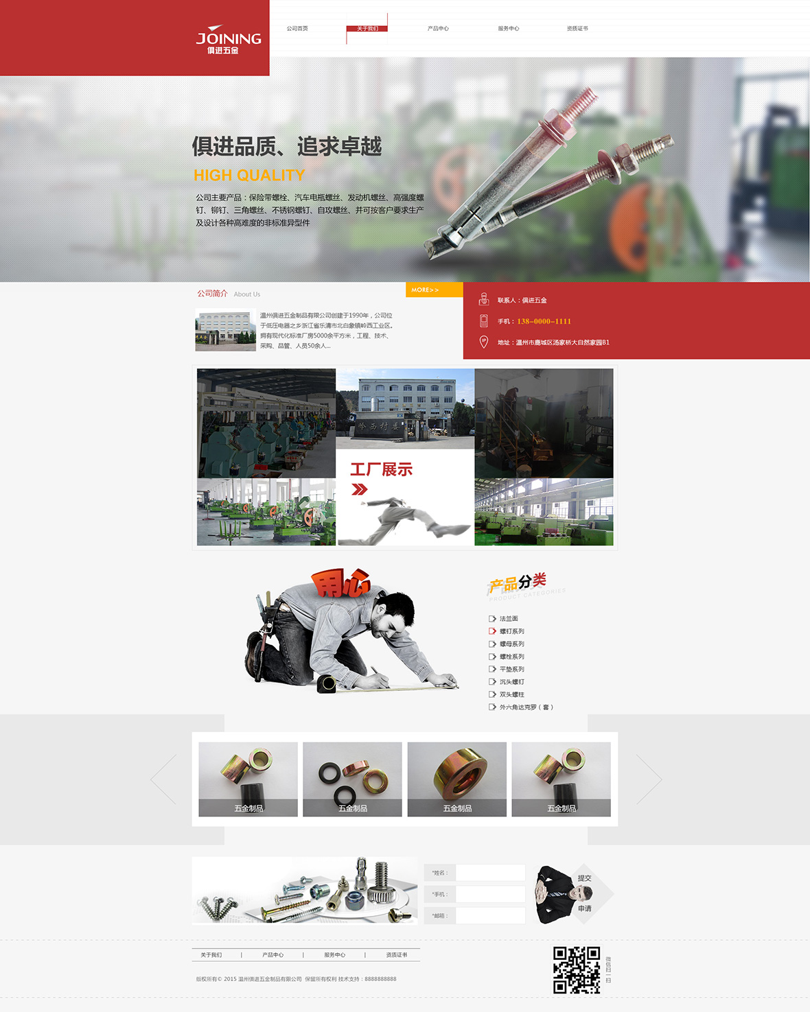 溫州俱進(jìn)五金制品有限公司創(chuàng)建于1990年,公司位于低壓電器之鄉(xiāng)浙江省樂(lè)清市北白象鎮(zhèn)嶺西工業(yè)區(qū)。擁有現(xiàn)代化標(biāo)準(zhǔn)廠房5000余平方米,工程、技術(shù)、采購(gòu)、品管、人員50余人